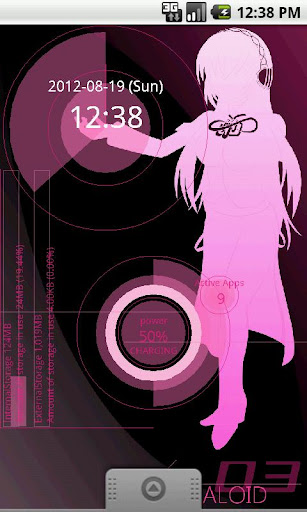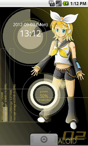 Con esta App podremos poner 4 variants de fondo: Megurine Luka 1 (Rosa) , Miku Hatsune ( Celeste), Rin Kagamine (Amarillo) y Megurine Luka 2 ( Rosa). A parte, podremos elegir si queremos que el personaje se vea en color o solo la silueta ( a mi opinión, queda muchisimo mejor con silueta =D).